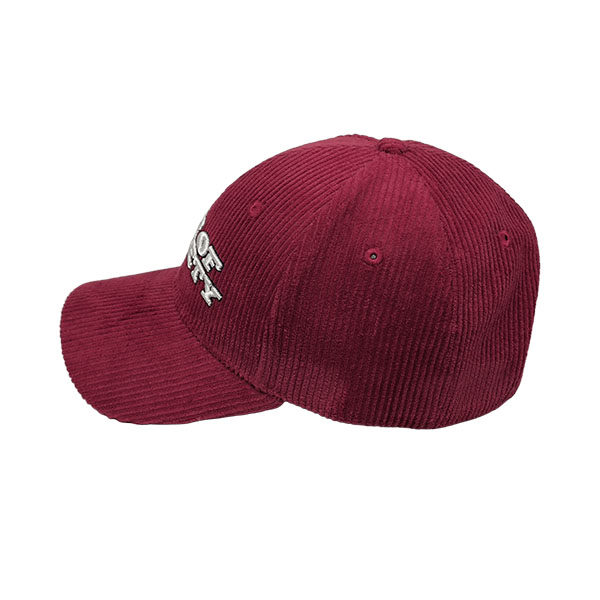 PRODUCT DETAILS *style: curved brim 6 panel baseball cap *composition: cap 100% corduroy and belt 100% leather *design: text 3D embroidered on the front, text embroidred and label on the back and text printed inside *color: red *size: adjustable buckle - 56 to 60 cm |