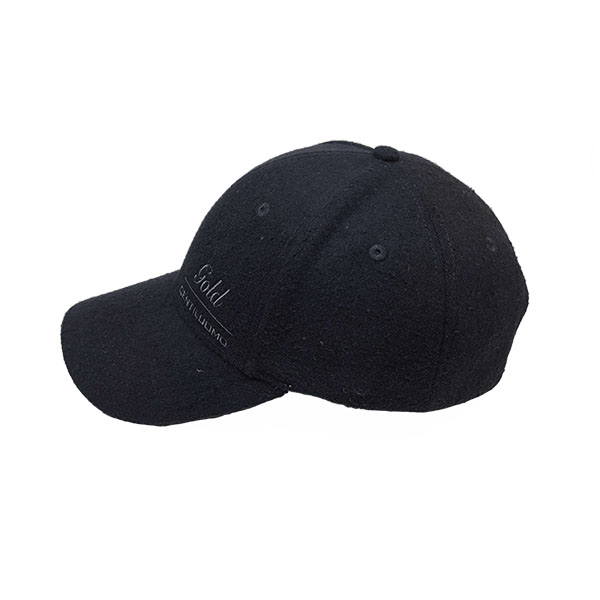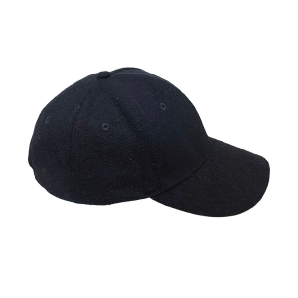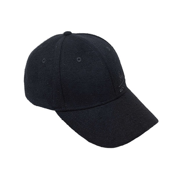 PRODUCT DETAILS *style: curved brim 6 panel baseball cap *composition: 100% wool serge *design: text embroidered on the front and label on the Sweatband *color: black *size: adjustable buckle - 56 to 60 cm |