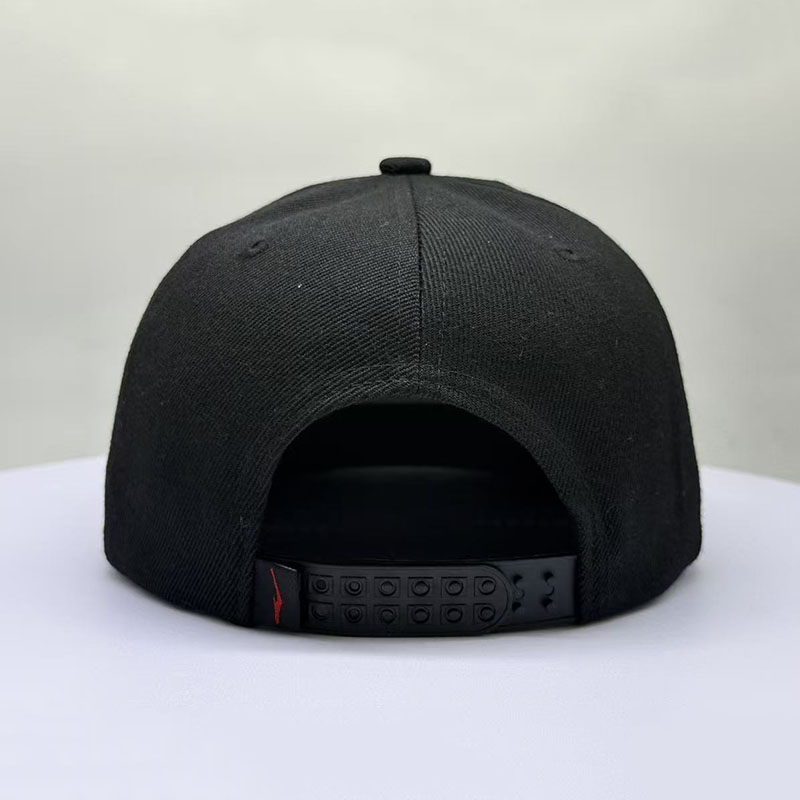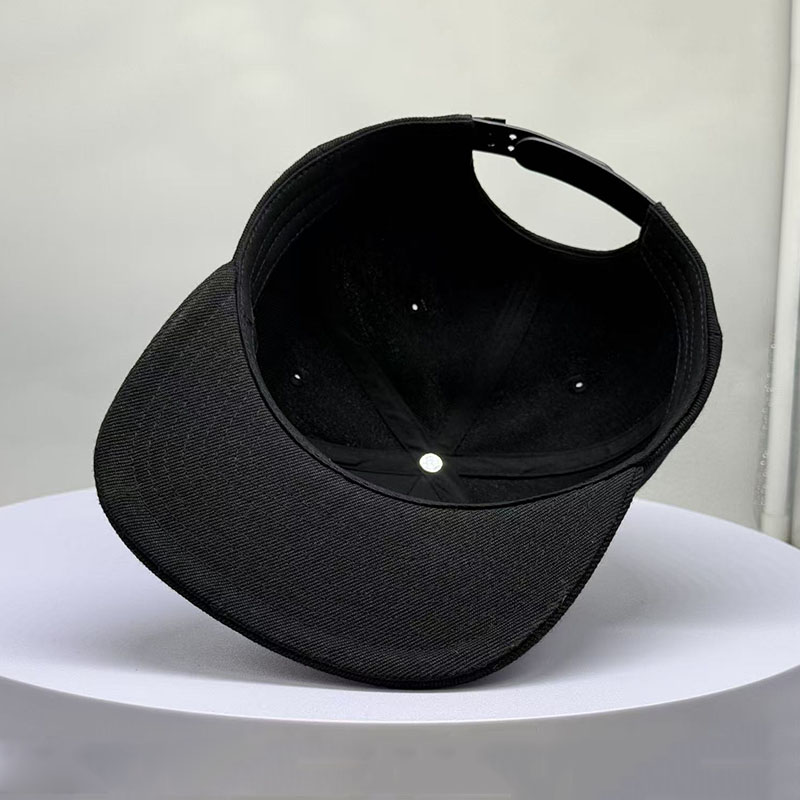 Style: flat brim 5 panel snapback cap Composition: 100% cotton Color: black Closure: double-row plastic snap Size: 58 cm |