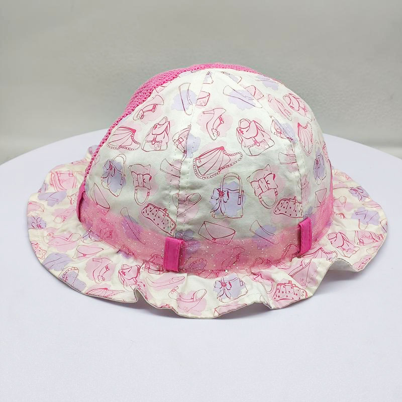 Style: baby girl sun hat with girls patterns Composition: 100% cotton Techniques: screen printing Color: pink Size: 48-52 cm |