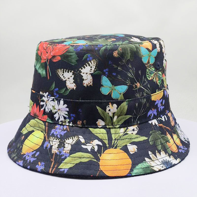 Style: leaf bucket Hat Composition: 100% polyester Techniques: printing Color: black Size: 58 cm |