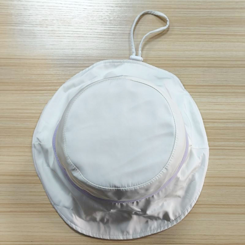 Style: ruffled dome sun protection bucket hat Composition: 100% polyester Techniques: printing Color: white Size: 58 cm |