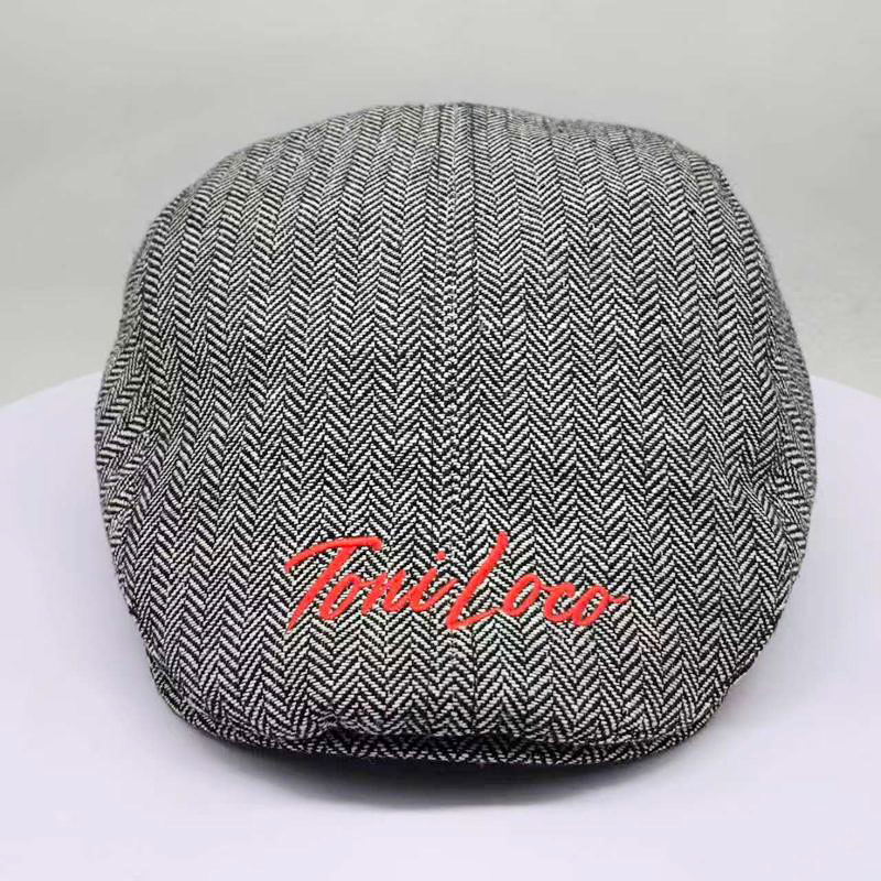 Style: men's striped flat-top beret Composition: 100% woolen Techniques: flat embroidery Color: grey Size: 58 cm |