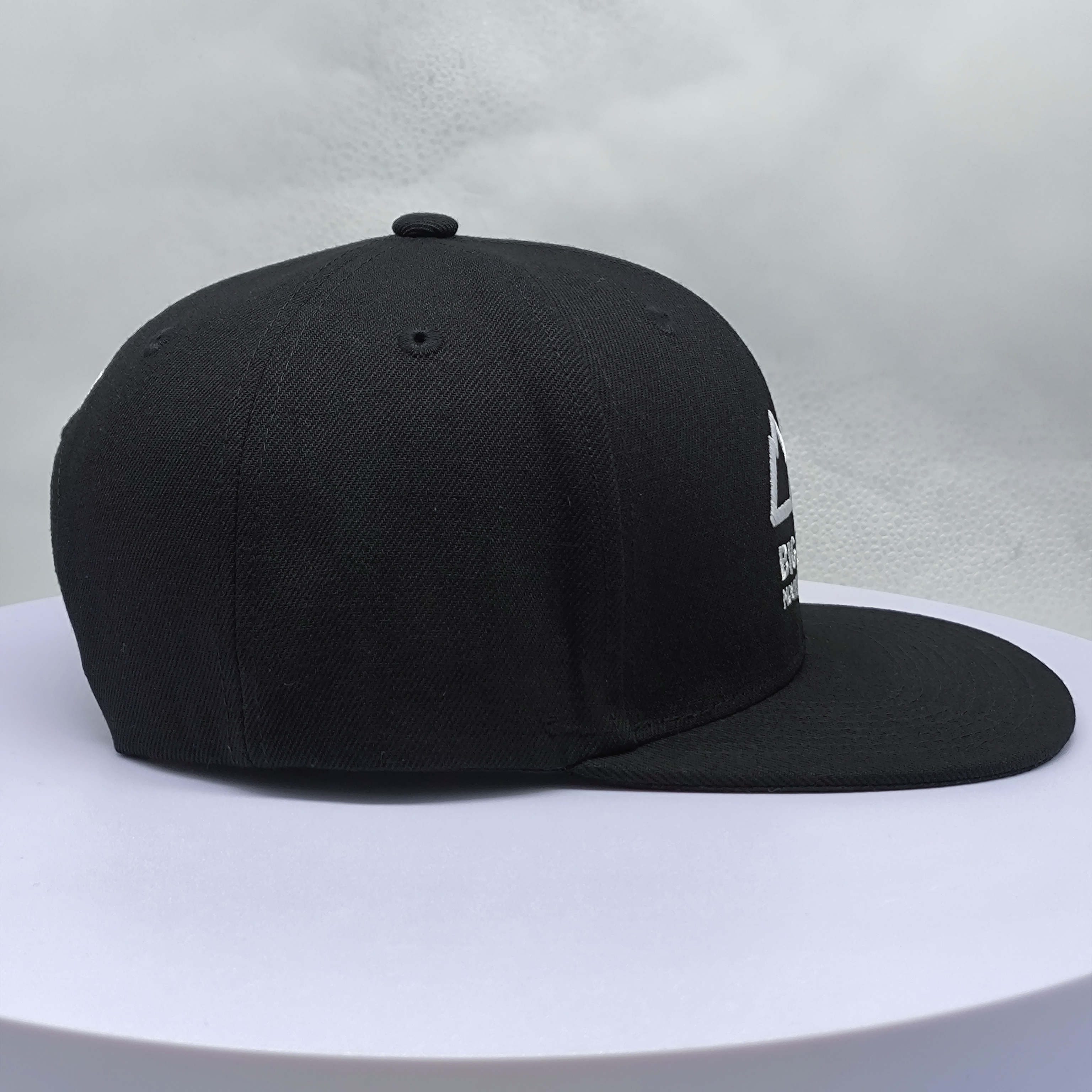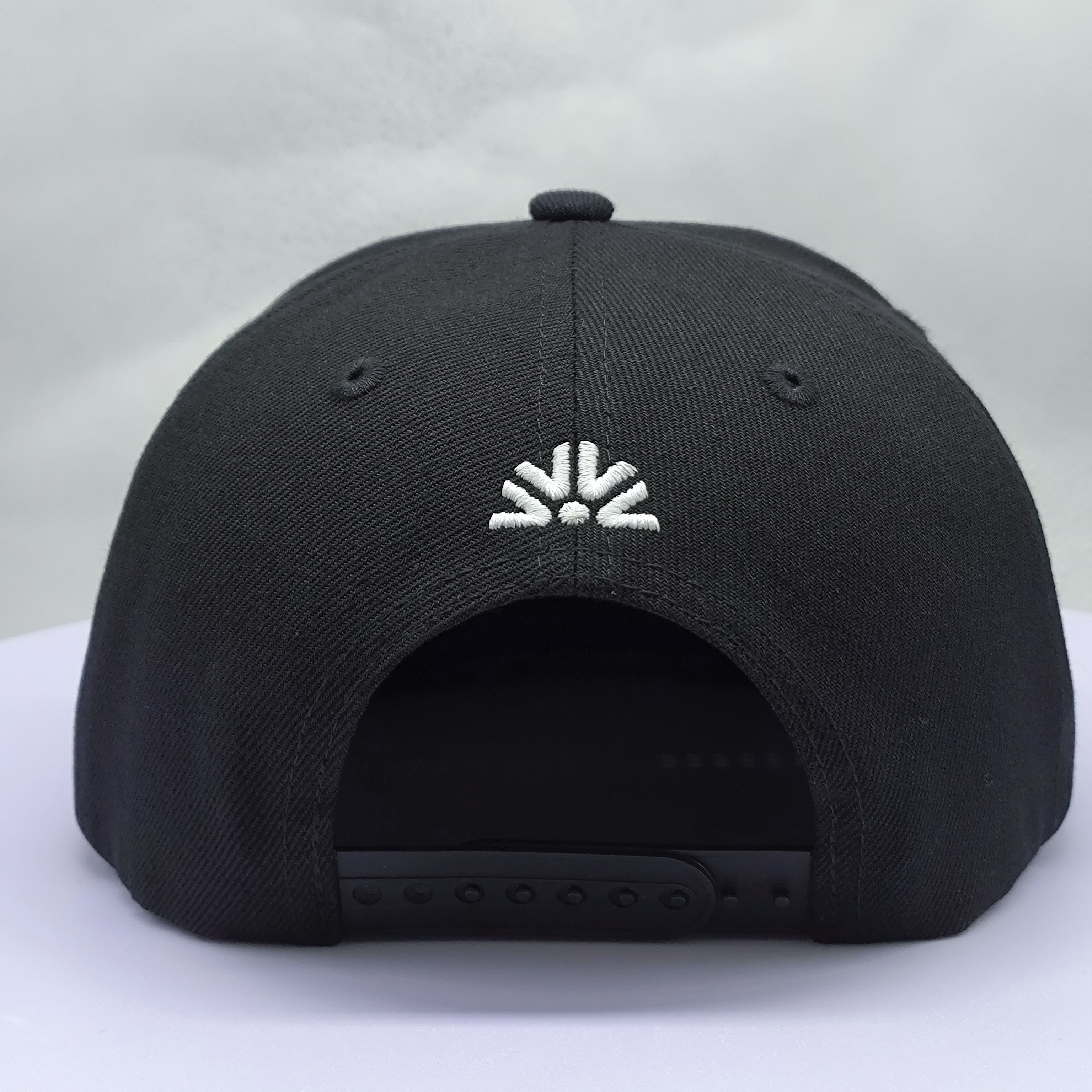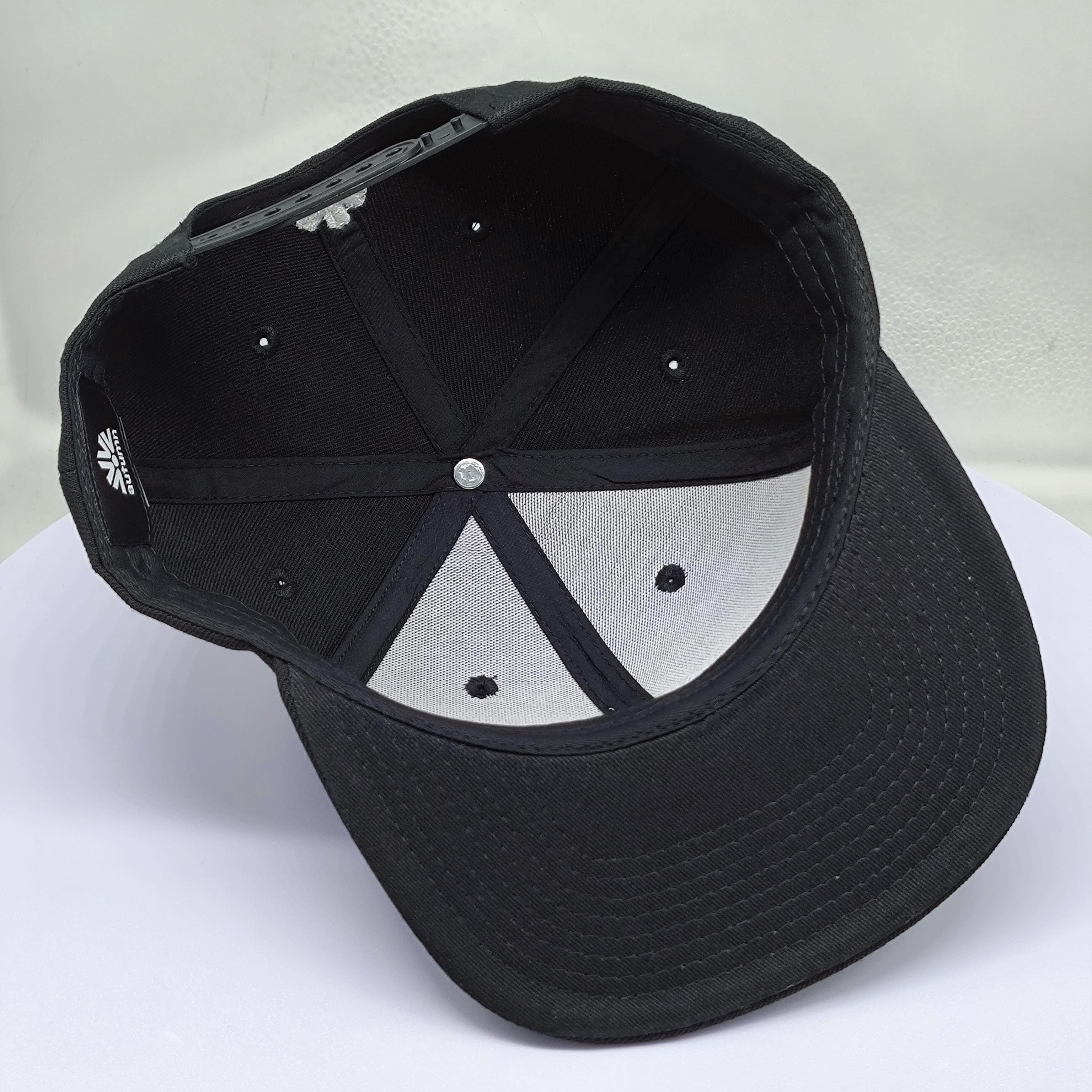 *Style: black flat brim 5 panel snapback cap *Composition: 100% cotton *Techniques: flat embroidery *Color: black *Closure: adjustable buckle *Size: one size |