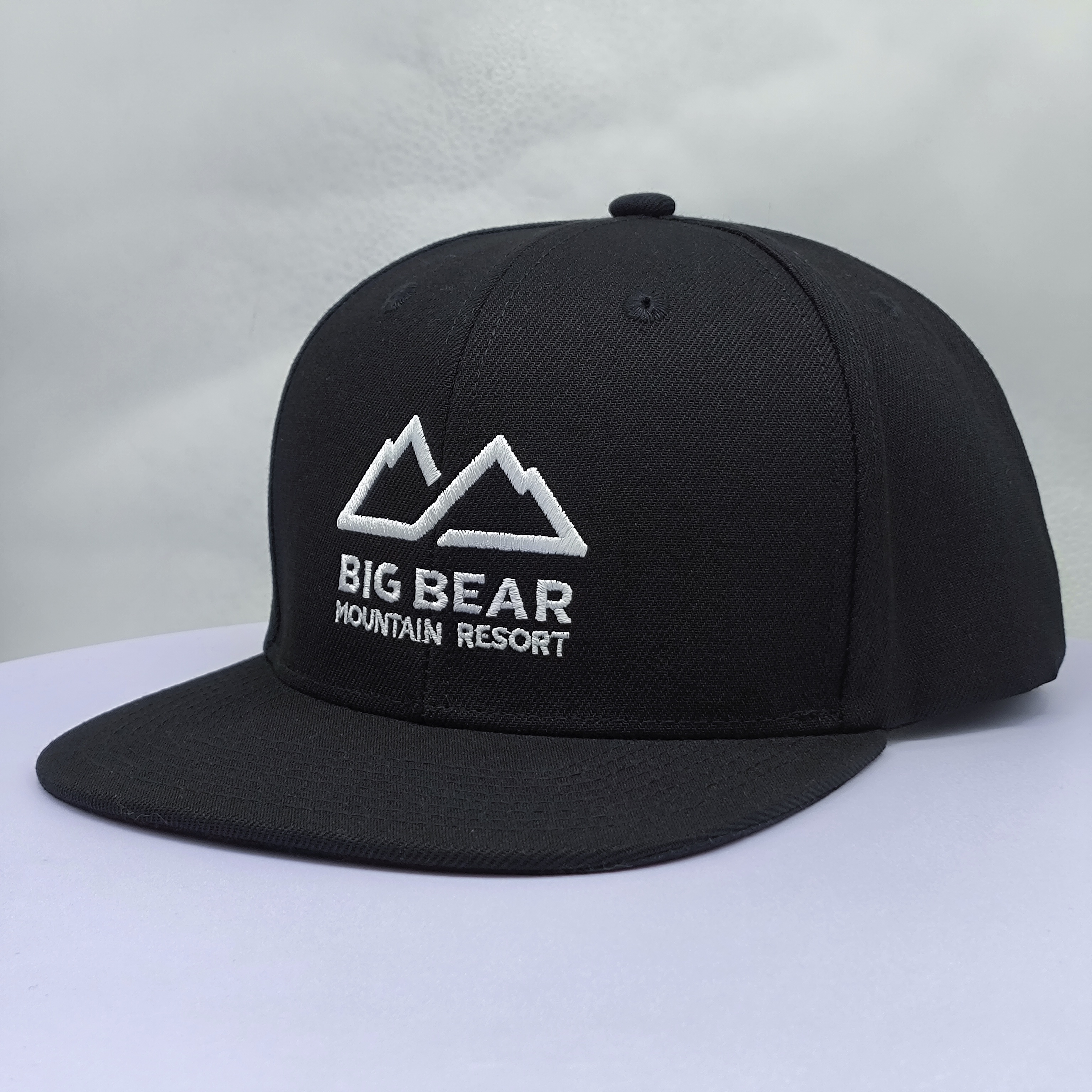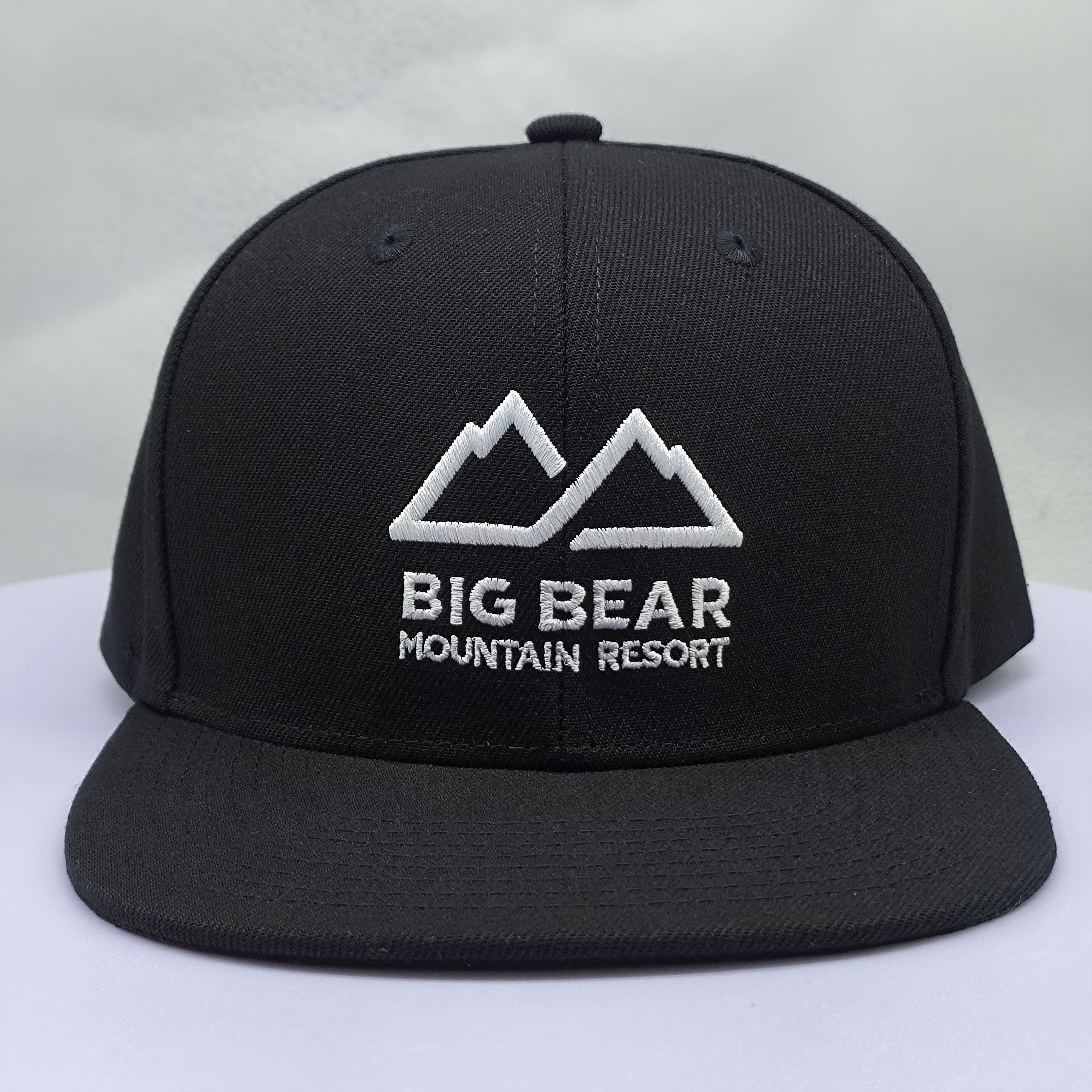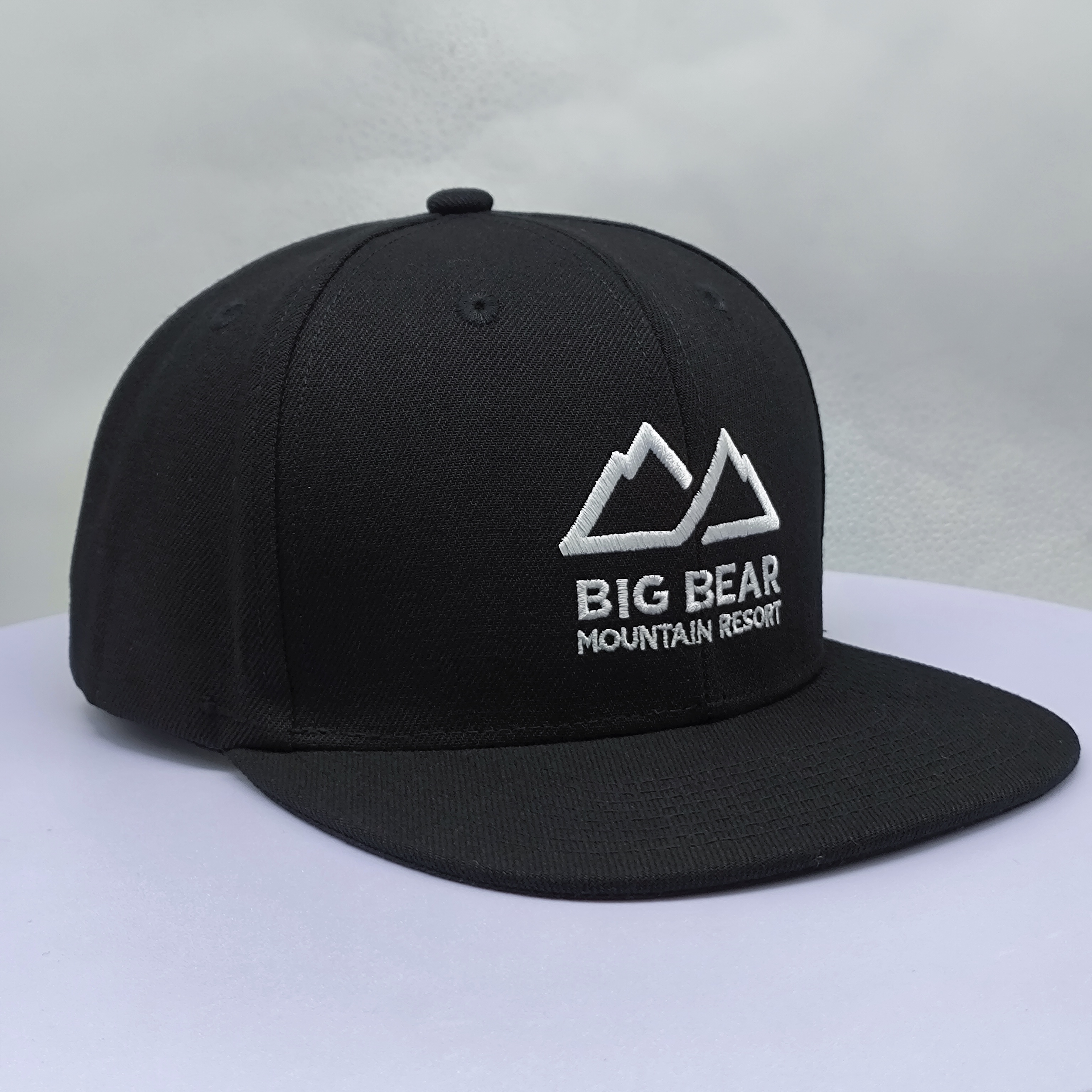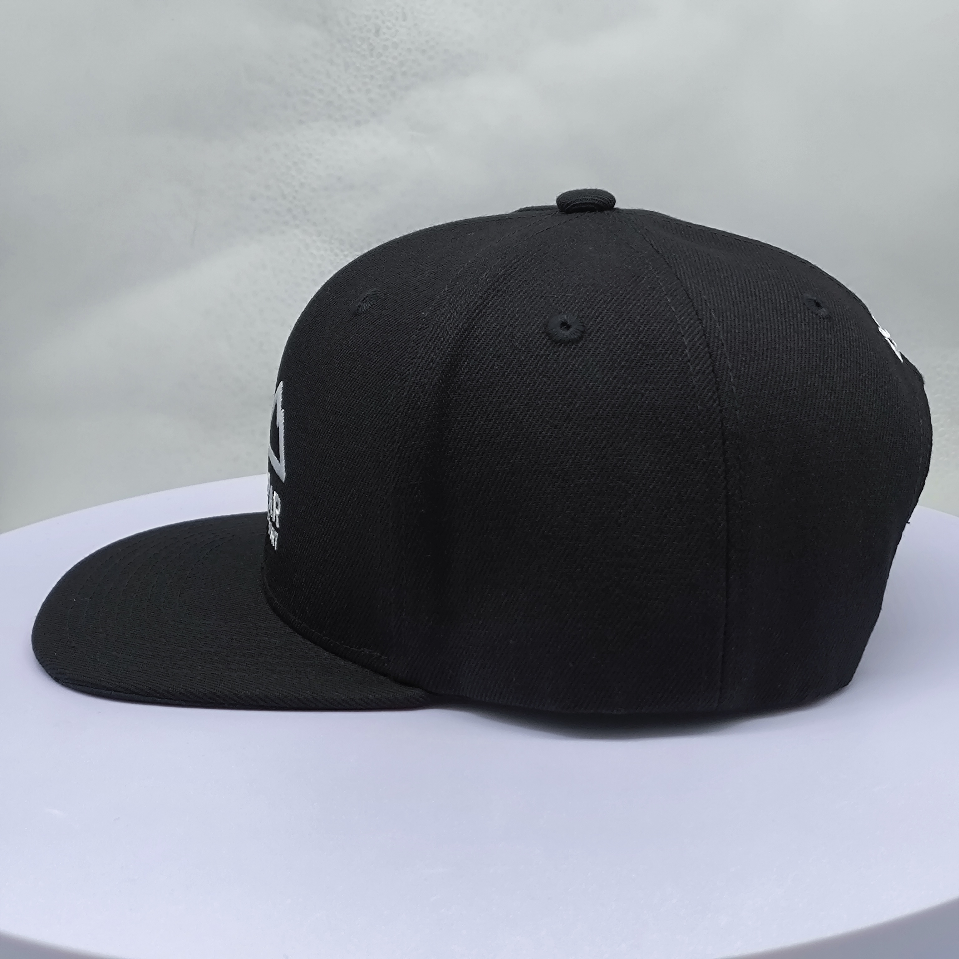 *Style: black flat brim 5 panel snapback cap *Composition: 100% cotton *Techniques: flat embroidery *Color: black *Closure: adjustable buckle *Size: one size |